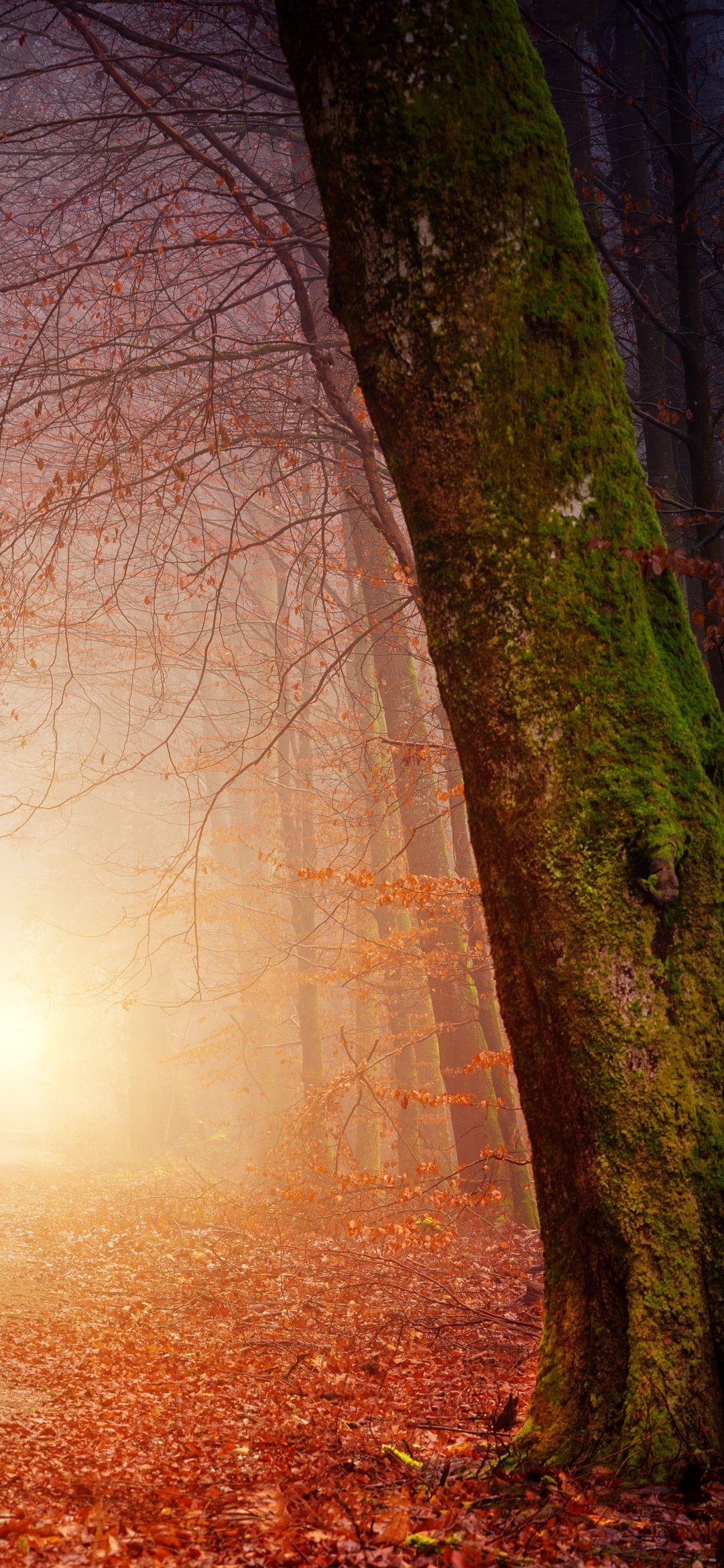 Wallpaper: forest, path, fog - 1080x2340