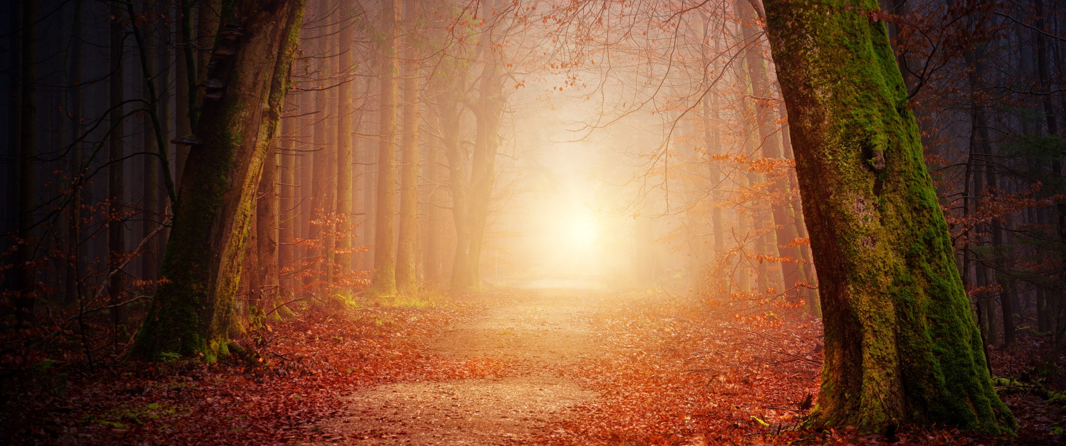 Wallpaper: forest, path, fog - 3440x1440