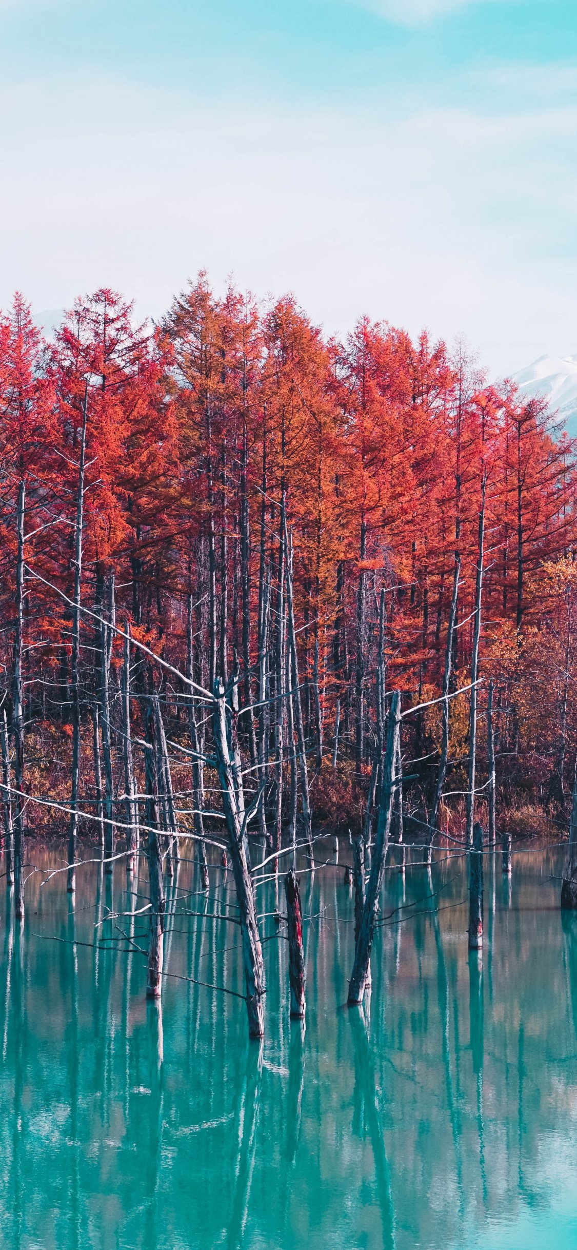 Wallpaper: lake, forest, red - 1125x2436