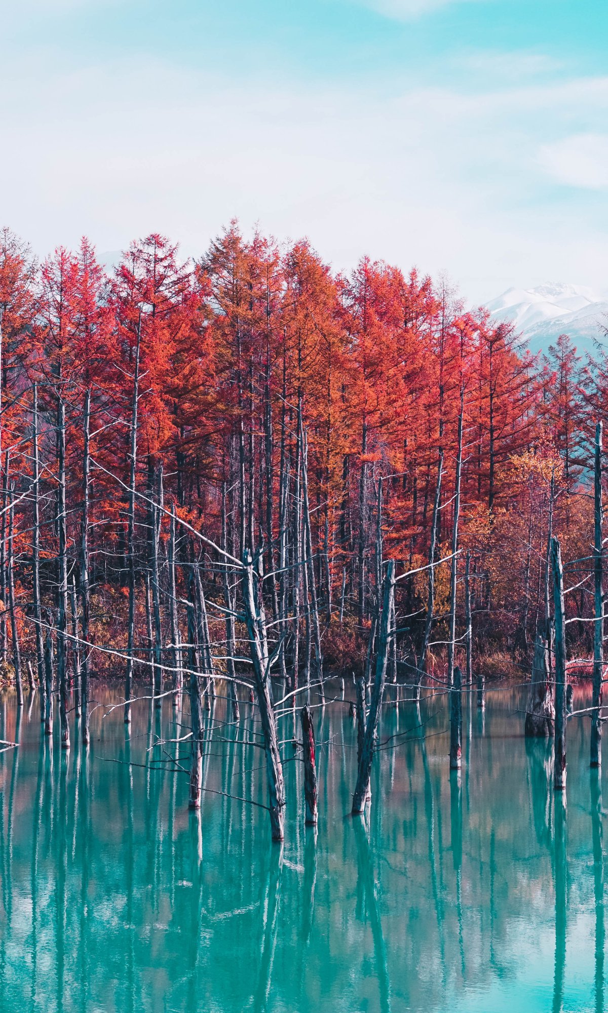 Wallpaper: lake, forest, red - 1200x2000