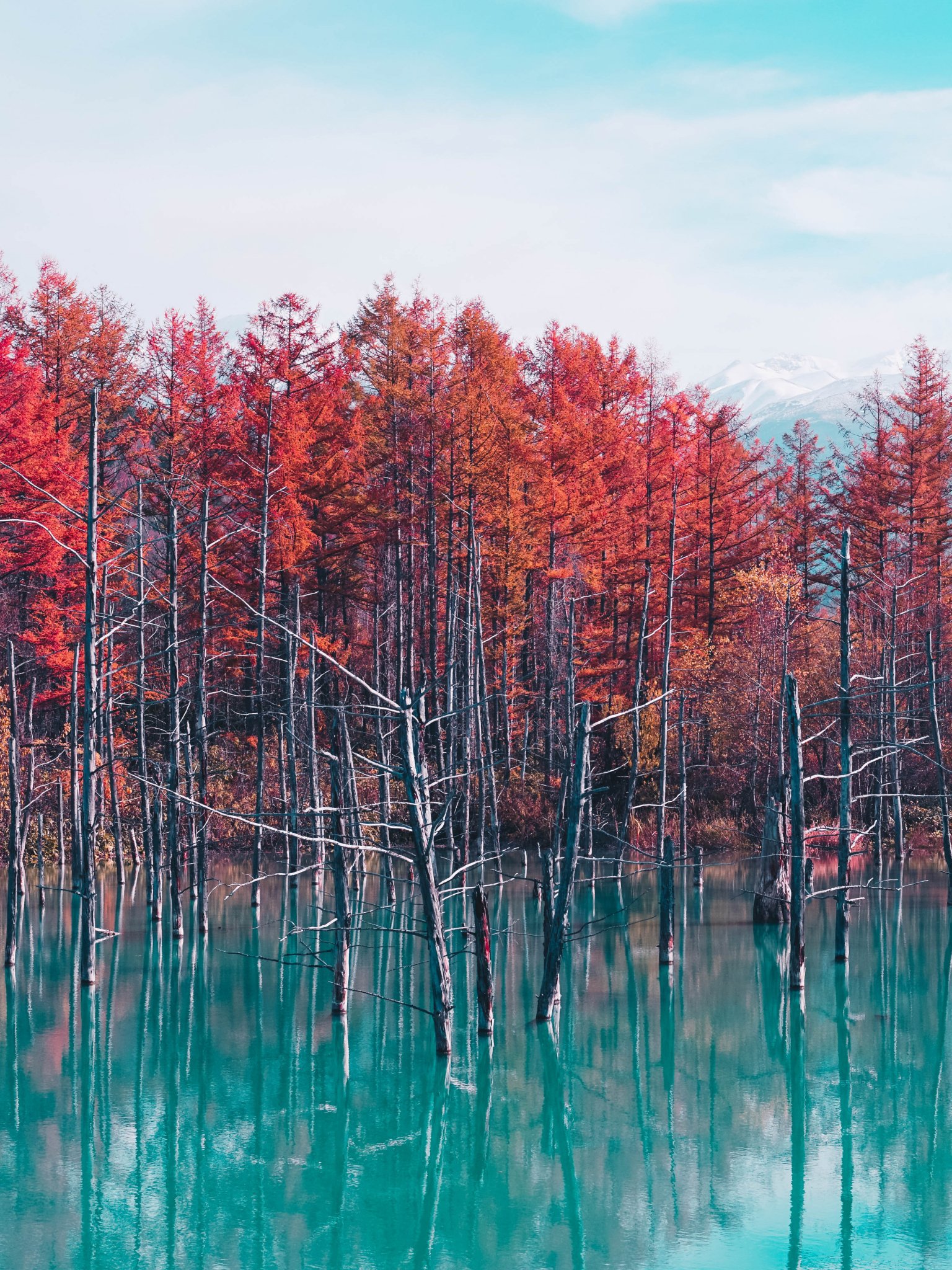 Wallpaper: lake, forest, red - 1536x2048