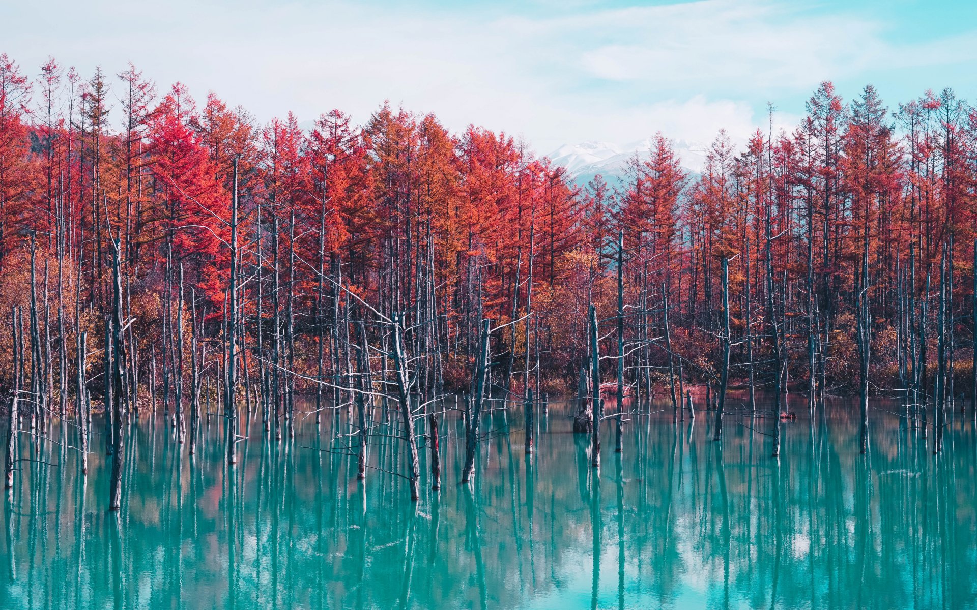 Wallpaper: lake, forest, red - 1920x1200