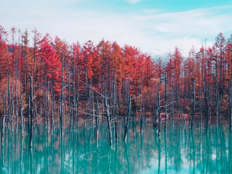 Wallpaper: lake, forest, red - 800x600