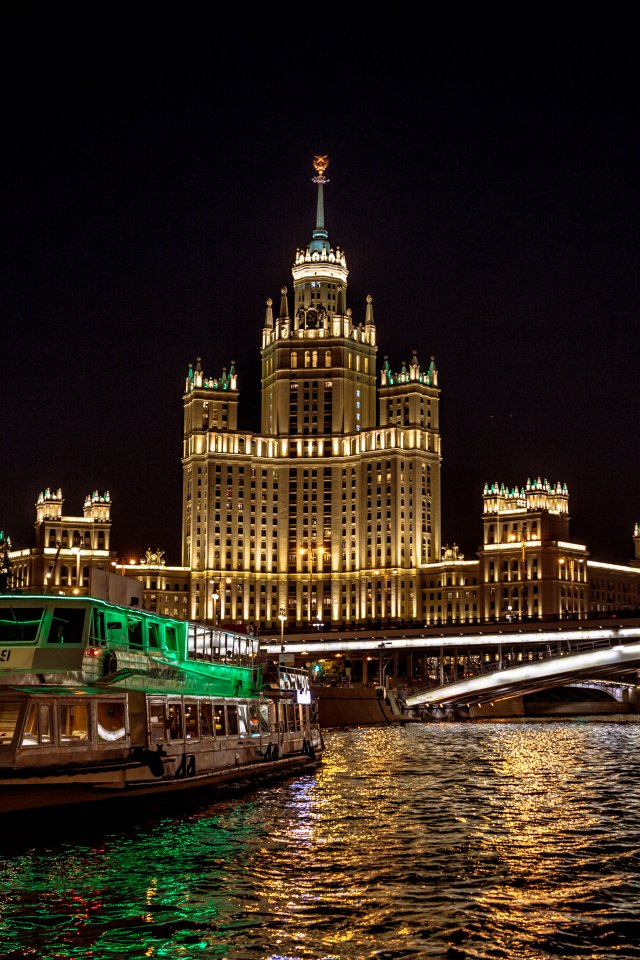 Wallpaper: Moscow, river, Stalin skyscraper - 640x960