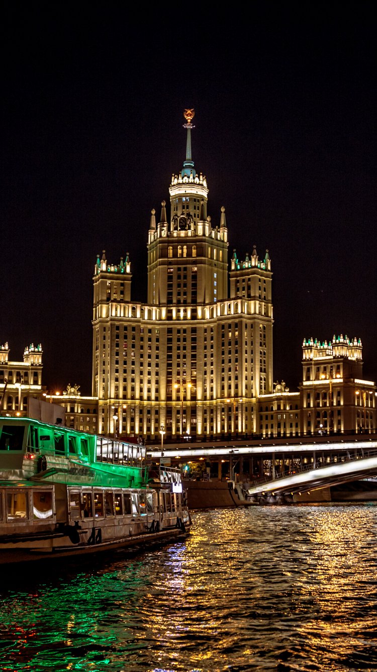 Wallpaper: Moscow, river, Stalin skyscraper - 750x1334